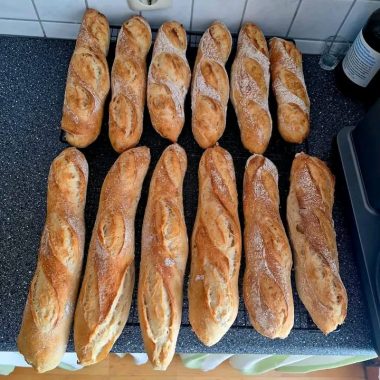 Transfer the baguettes to a wire rack to cool for at least 20 minutes before slicing. This resting time helps set the crumb and texture.