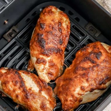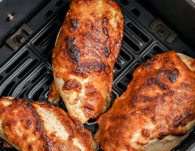 Des blancs de poulet juteux cuits à l’air fryer, recouverts d’une sauce crémeuse au parmesan qui fond dans la viande pour un plat tendre et plein de saveur.