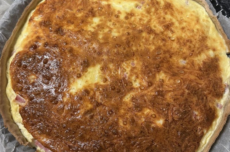 La quiche est prête lorsque le centre est bien pris et que le dessus est doré. Vous pouvez insérer la pointe d’un couteau au centre. Si elle ressort propre, la quiche est cuite.