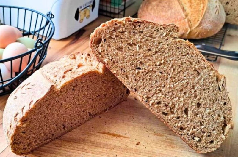 This Sourdough Bread made with 100% fresh milled flour is a healthy and traditional bread. It uses freshly ground whole grains, which makes it rich in fiber, nutrients, and natural flavor. Unlike store-bought bread, this homemade sourdough has no preservatives and is easier to digest.